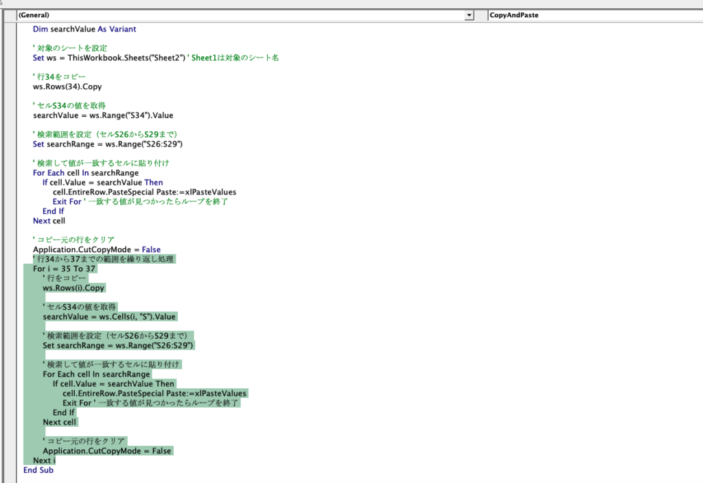 希望通り動くマクロを作ることができました。