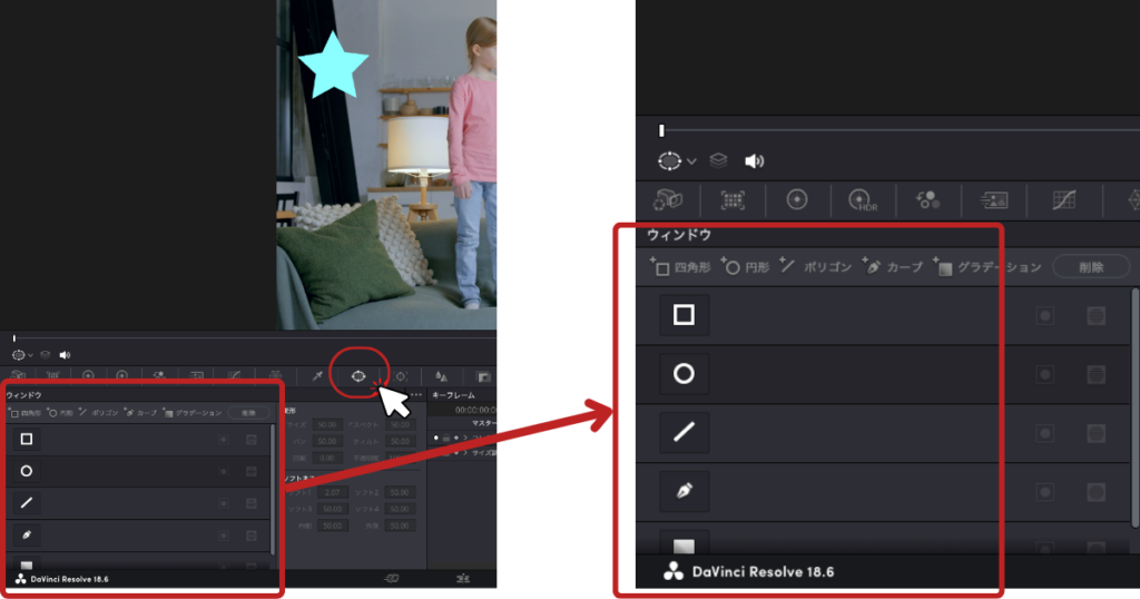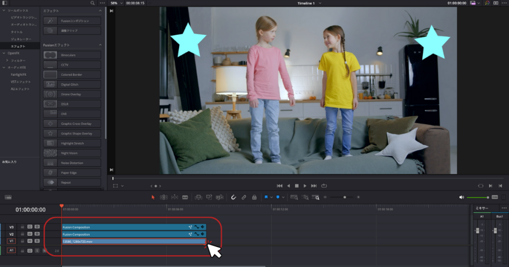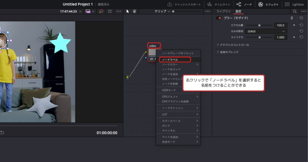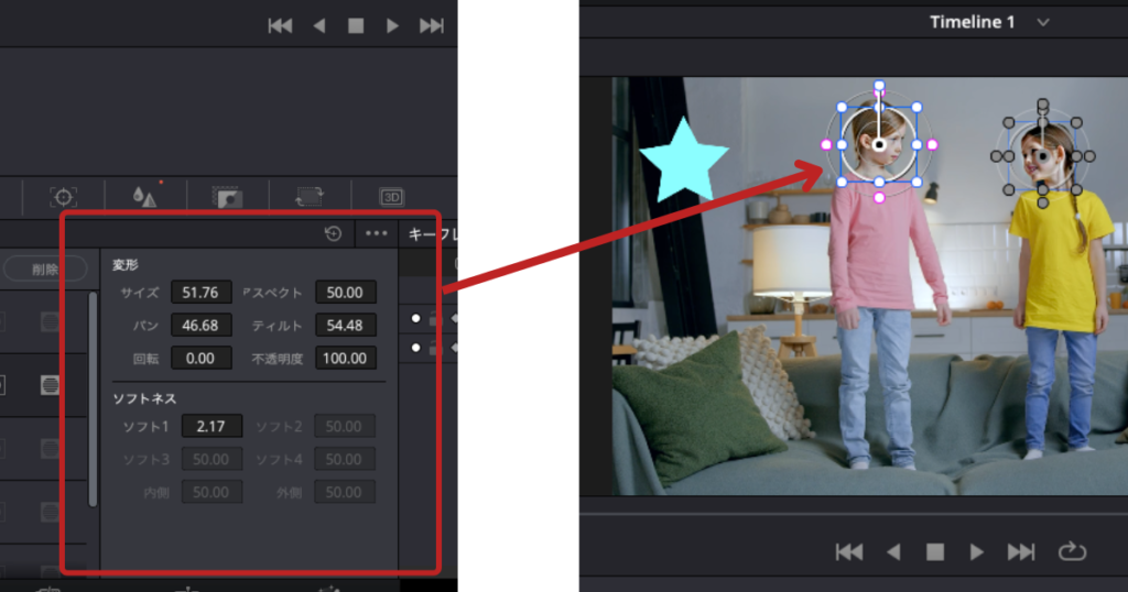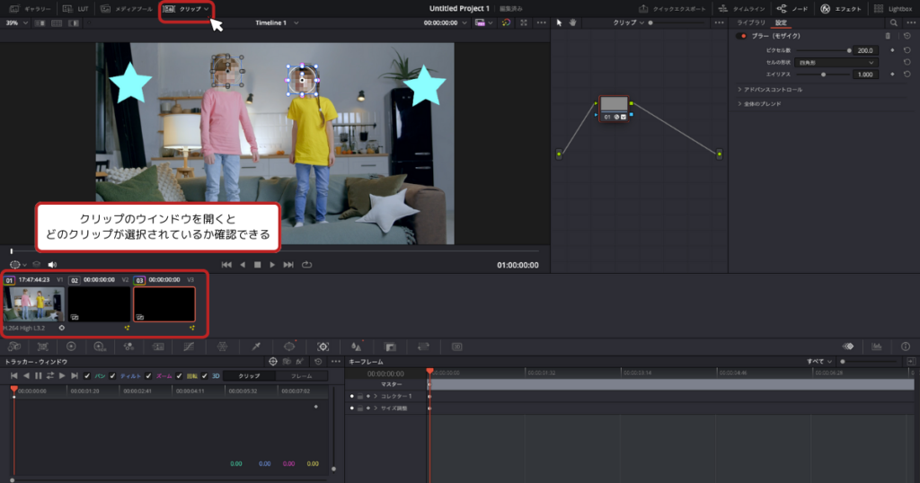 DaVinci Resolveでモザイクをかけるときは、マスクを使用します。