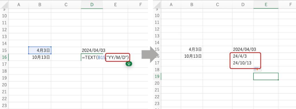 =TEXT(A2, “YY/M/D”)