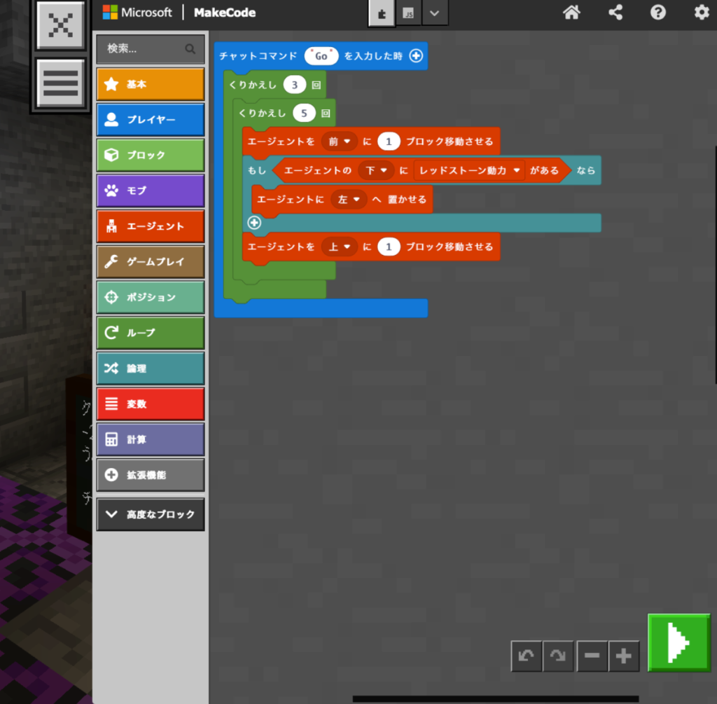 Minecraftで作られたミッションステージを、Make Codeを使って動くエージェントくんを使ってクリアしていきます。