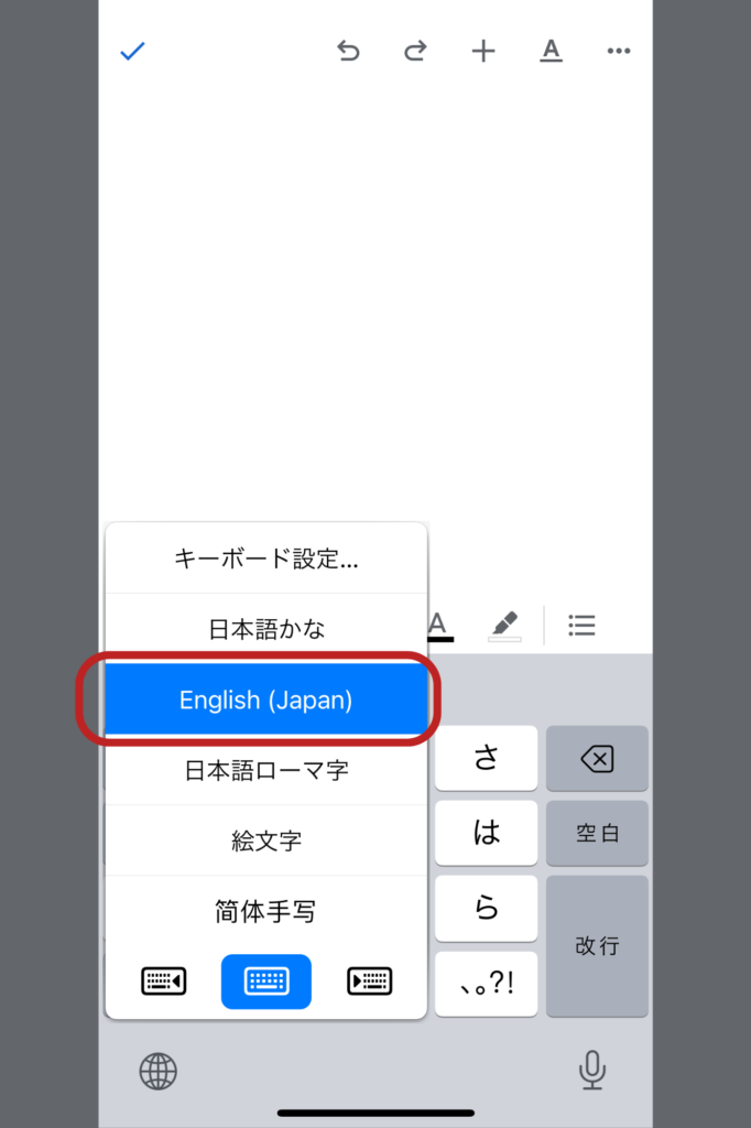 英語がし話せる方は、文字入力を英語設定にすると英語で入力ができます。